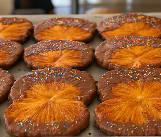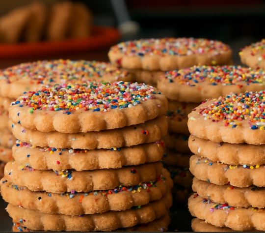 Galletas doradas con chispitas de colores que alegran la vista y el paladar. Suaves por dentro, crujientes por fuera, con un toque dulce y divertido. Perfectas para compartir, regalar o disfrutar en cualquier momento del día.